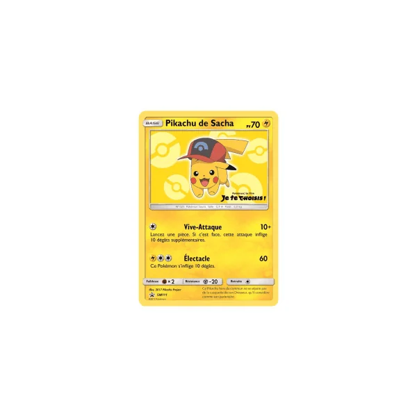 Découvrez Pikachu de Sacha (sm111), une carte Pokémon de l’extension Promos Soleil & Lune, provenant du bloc Soleil & Lune. Idéale pour compléter votre collection, cette carte Promo plaira autant aux collectionneurs qu’aux joueurs.