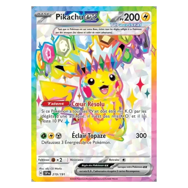 Découvrez Pikachu (ssp219), une carte Pokémon de l’extension Étincelles Déferlantes, provenant du bloc Écarlate & Violet. Idéale pour compléter votre collection, cette carte Ultra Rare plaira autant aux collectionneurs qu’aux joueurs.