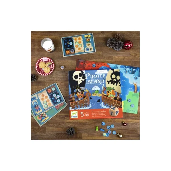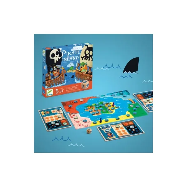 Découvrez le jeu Pirate Island de Djeco, un jeu de parcours et de collecte sur le thème des pirates pour les enfants dès 5 ans. Un jeu de société aux règles simples, mêlant chance, stratégie et audace.