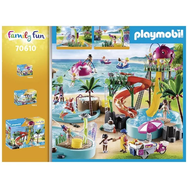 Venez vous amuser au grand parc aquatique, en famille ou entre amis, c’est l’endroit idéal pour passer une après-midi de folie ! Entraîne ton adresse au tir en dirigeant le jet du pistolet à eau vers les cibles. La piscine peut être remplie d’eau ! Contient deux personnages. Dimensions : 34,5 x 27 x 24 cm (LxPxH). 65 pièces.