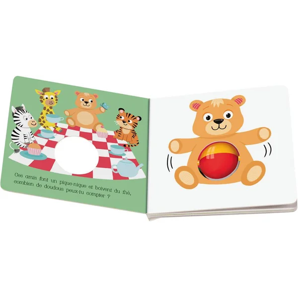 Qu’est-ce qui fait du bruit ? La balle, la voiture et l’ours en peluche ont tous une boule amusante qui fait des bruits captivants lorsqu’elle roule. Ceci incite les bébés dès 6 mois à saisir le livre et à l’explorer avec tous leurs sens. Même avec leurs petites mains, ils peuvent facilement tourner les pages de ce livre avec hochet intégré. Cela stimule la motricité fine. Grâce aux douces comptines et aux jolies illustrations, les petits découvrent leurs premiers mots. Avec notre nouvelle gamme de jouets et de livres Play+ pour les enfants de 0 à 3 ans, nous proposons des produits adaptés à la petite enfance combinée à l’expérience de Ravensburger. Développés avec l’exigence de qualité de Ravensburger, nos livres et jouets plaisent aux enfants tout en leur permettant d’apprendre et de découvrir en s’amusant.Notre approche du jeu nous a amené à définir une gamme qui répond également aux besoins des parents, et chaque produit a un plus !