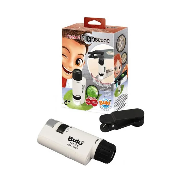 Découvrez le pocket microscope de Buki, un microscope de poche pour découvrir le monde du minuscule avec un grossissement jusqu’à 120x pour les enfants à partir de 8 ans.