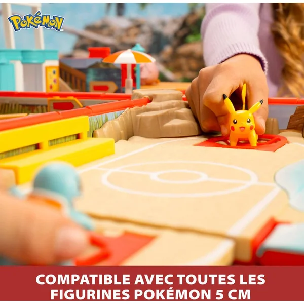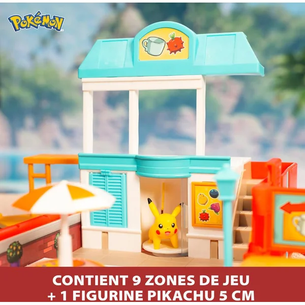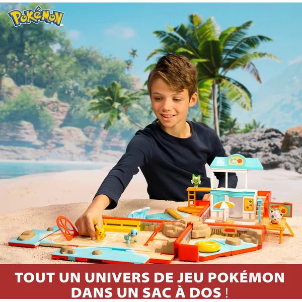 CONTENU DU SAC A DOS POKEMON PLAGE – Un sac à dos qui s’ouvre pour dévoiler 9 aires de jeux : Escalier à bascule, Vague de l’océan, Poutre d’équilibre, Pont caché, Fenêtre cachée du café, Lanceurs de combat, Flotteur de plage à bascule, Table tournante et Porte secrètet. Ce sac à dos du dresseur Pokémon contient une mini-figurine Pikachu 5 cm..