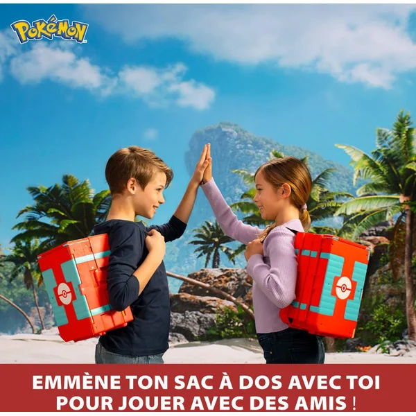 JOUET ENFANT 4 ANS ET PLUS – Idéal pour tous les fans de Pokémon, cet univers de jeu très complet permet de se recréer les plus grands combats et histoires de la saga ! Une belle idée cadeau avec ce sac à dos qui est un véritable coffret de jeu Pokémon..