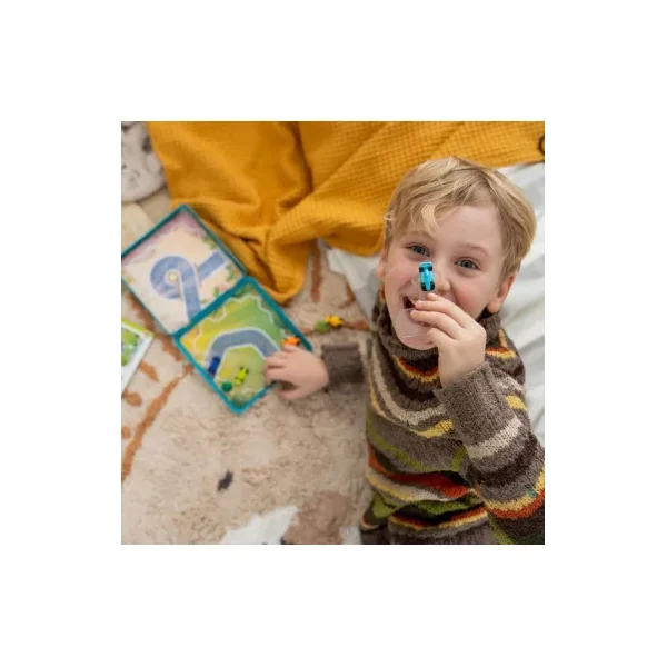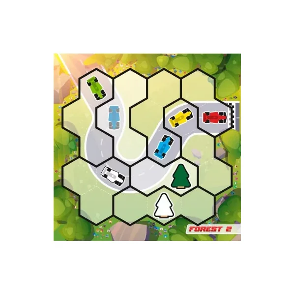 Choisissez un défi parmi les 48 proposés, placez le circuit choisi, ainsi que la ou les pièces demandées comme indiqué. Puis placez toutes celles restantes en respectant l’ordre d’arrivée donné par le défi. Tous les véhicules devront bien rouler sur la piste, tandis que les arbres resteront en dehors. Quant à l’orientation des voitures, vous pourrez la modifier puisqu’elles tournent sur leur axe!