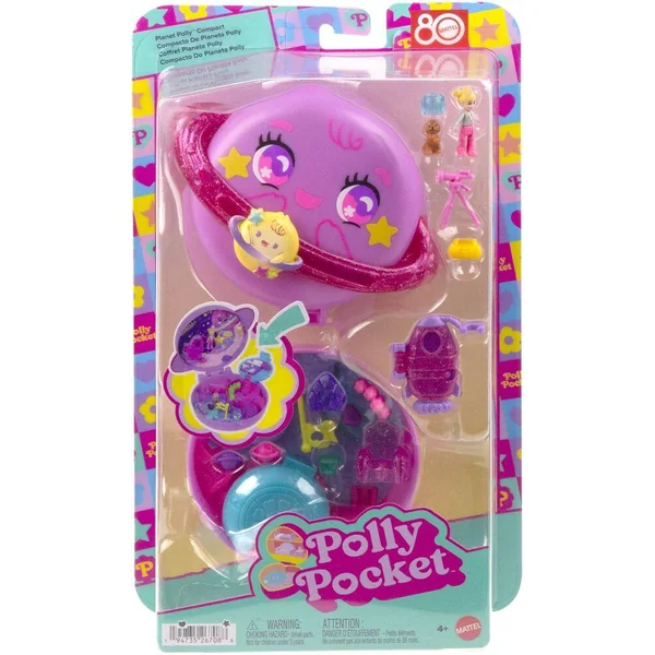 La jolie planète mauve se réjouit de porter son bébé sur son anneau scintillant ! 5 surprises, 1 mini-figurine et 10 accessoires sont à découvrir. Coffret-surprises avec 10 accessoires et 1 mini-figurine. Explorez d’autres galaxies dans ce coffret Exploration spatiale de Polly Pocket, qui comprend une mini-figurine et 10 accessoires, dont un animal de compagnie. L’adorable partie extérieure du coffret en forme de planète est dotée d’un anneau sur lequel coulisse une planète plus petite et s’ouvre sur une aventure interstellaire ! Préparez-vous à vivre des aventures extraordinaires avec une fusée, une œuvre d’art qui tourne et une station spatiale ! Emportez le coffret où vous voulez pour vous amuser partout ! Idéal pour les enfants à partir de 4 ans, en particulier s’ils adorent l’espace, les étoiles et les planètes.