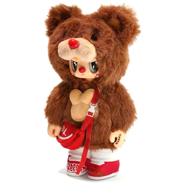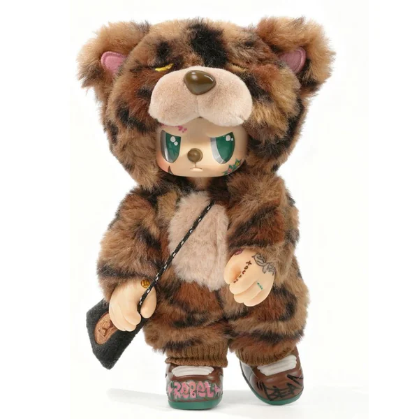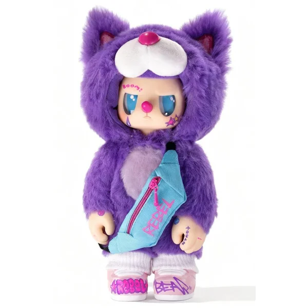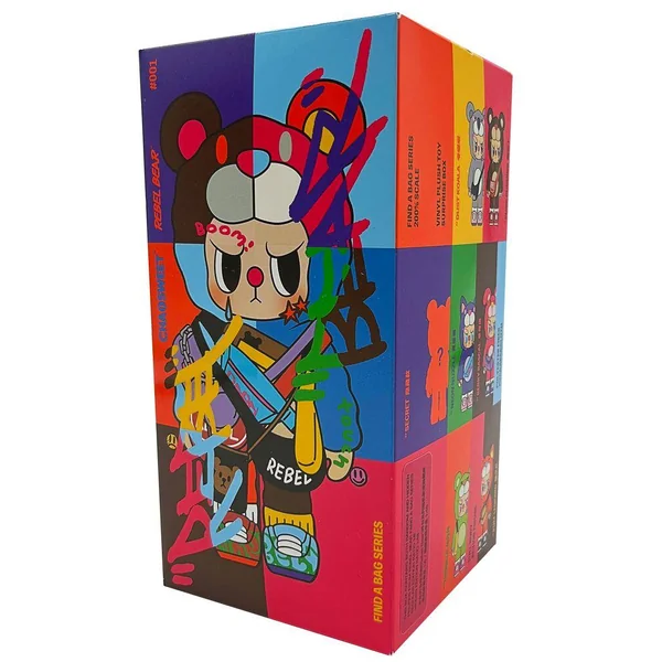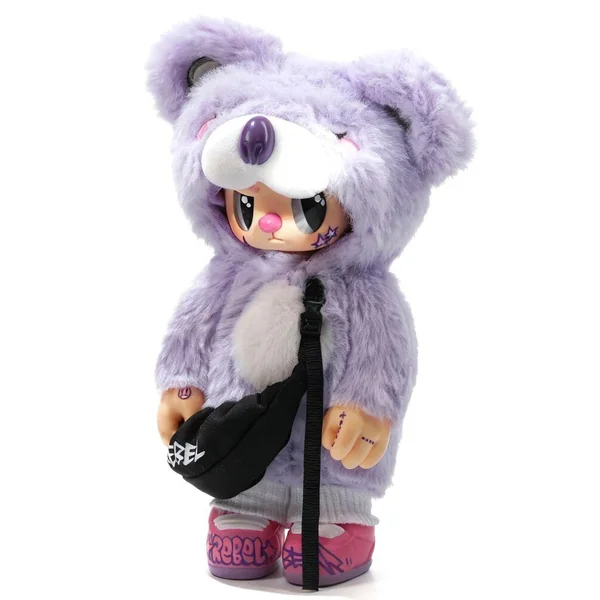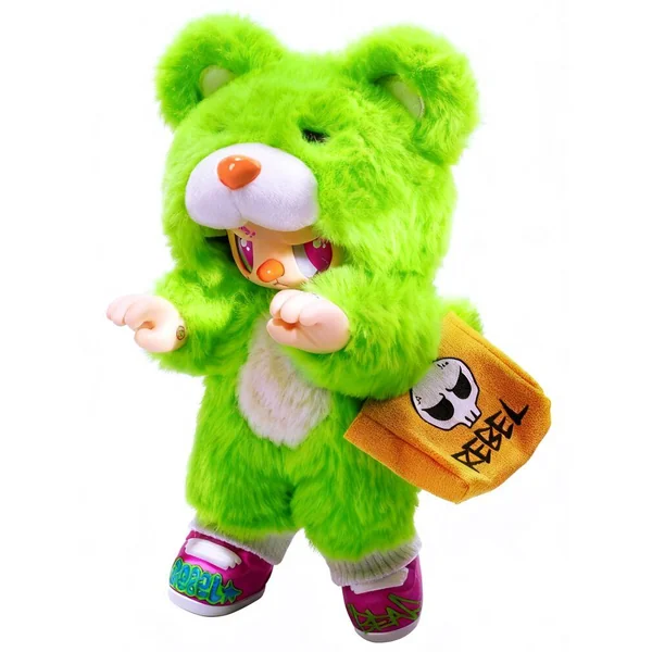 Figurine Rebel Bear Moveable Bag Series à collectionner. Plusieurs modèles assortis : 6 connus et 1 mystère. Contenu : Une figurine en peluche et vinyle avec une tenue, un sac et une carte d’identité officielle. Noms des 6 modèles connus : Sugar Claw (orange), Punk Pudding (marron), Dust Koala (gris), Twinkle (vert), Neon Muzzle (violet) et Berry Rascal (rose).