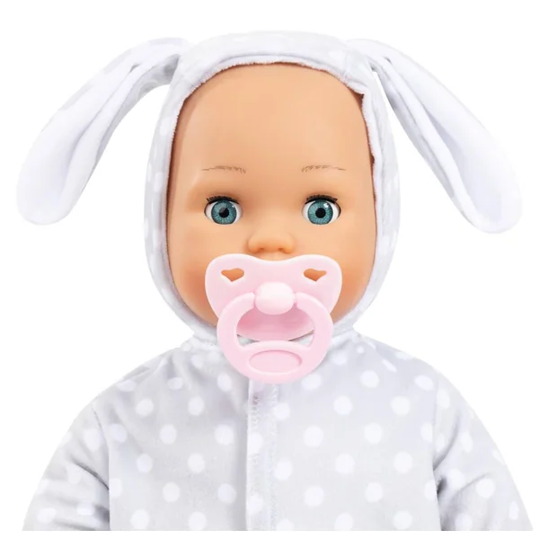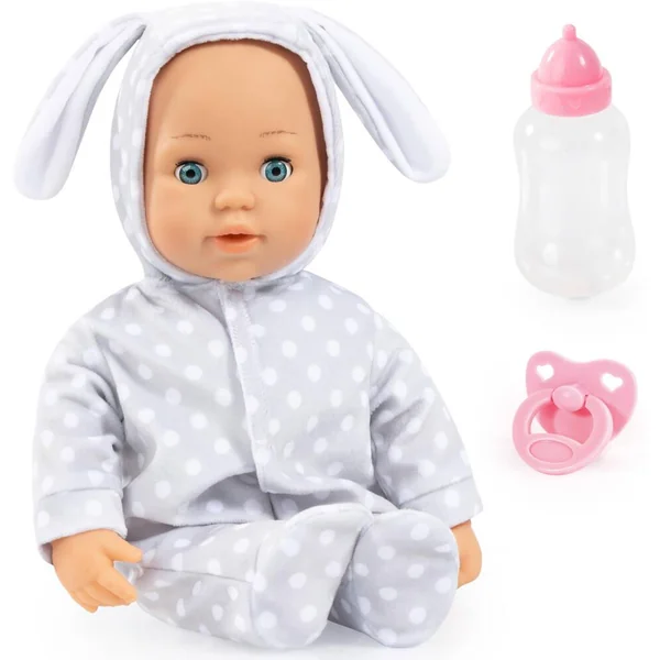 Poupée interactive de 38 cm, au corps souple. 24 sons réalistes de bébé. Avec les yeux dormeurs. Quand tu appuies sur son ventre, elle rit, pleure ou fait des sons de bébés. Livré avec 1 tétine et 1 biberon. 3 piles boutons (LR44) fournies. Instructions incluses. (Puce en français uniquement.)