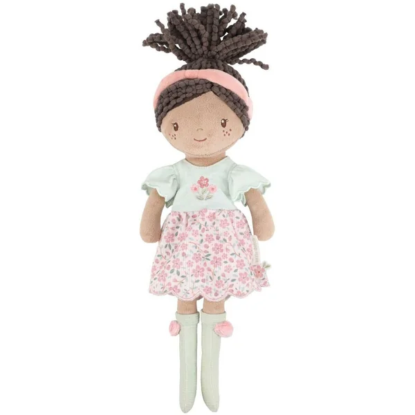 Evi est une adorable poupée en peluche qui accompagne les enfants avec douceur. Avec sa jupe fleurie, son petit haut délicat et sa chevelure bouclée maintenue par un bandeau rose, elle dégage une tendresse immédiate. Son corps moelleux la rend agréable à câliner et facile à manipuler. Haute de 35 cm, Evi se glisse aisément dans un sac ou un lit pour suivre votre enfant dans toutes ses aventures imaginaires.