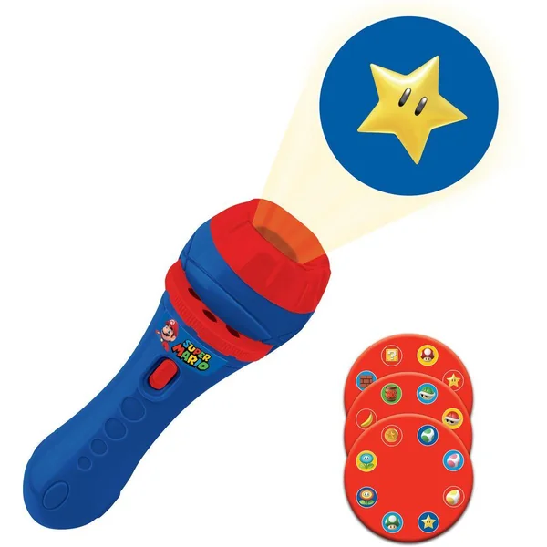 Projetez des images Super Mario avec les 3 disques (24 images) inclus. Retrouvez l’univers Super Mario, les image s’illuminent dans le noir! Imaginez vos propres histoires grâce aux images qui se suivent dans un ordre logique. La chambre de vos enfants devient un véritable théatre : Inventez de nouvelles aventures Super Mario ! 2 en 1, se transforme aussi en une lampe torche LED super pratique diffusant une douce lumière blanche. Vos enfants peuvent aller à la salle de bain et retrouver tout seul dans le noir leur doudou en allumant simplement cette lampe torche! Alimentation : 3 x AG13/LR44 (incluses).