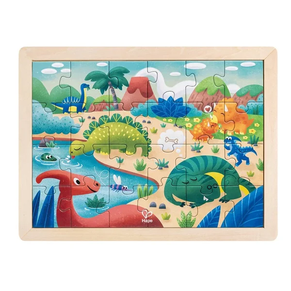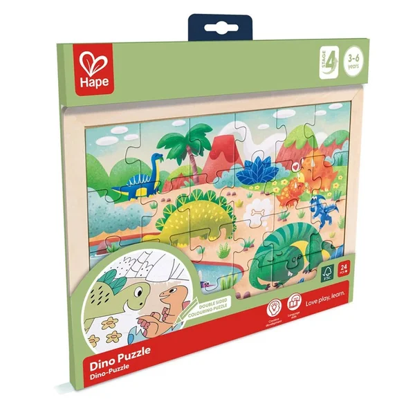 Ce puzzle préhistorique ne manquera pas de conserver l’excitation. Avec ses 24 pièces, tu reconstitueras un puzzle captivant avec un éventail d’arbres, de montagnes et, bien sûr, de dinosaures ! Il y a également un côté vierge au verso qui te permettra de colorier ton propre puzzle. Ce puzzle est livré avec un plateau en bois et un poster de référence.