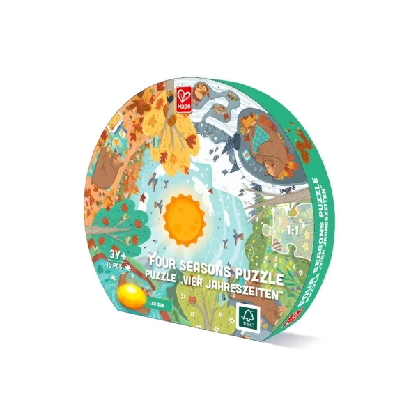 Mère Nature est tout simplement merveilleuse et l’ours sage connaît de nombreuses histoires sur les saisons ! Dans ce grand puzzle, le soleil s’illumine grâce à des LED, ce qui rend très amusant le fait d’associer les 16 pièces du puzzle. FAQ
