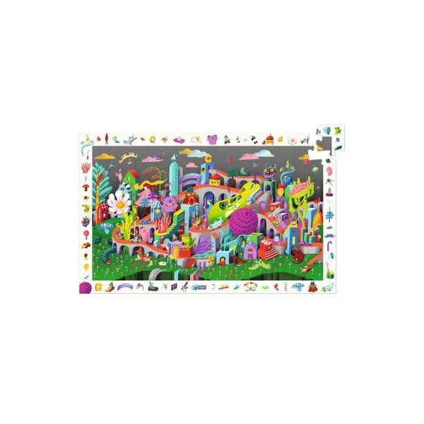 Découvrez le puzzle d’observation Crazy Town de Djeco, un puzzle de 200 pièces pour les enfants dès 6 ans. Votre enfant va créer son puzzle, puis il va s’amuser à retrouver dans l’image les éléments de la frise.