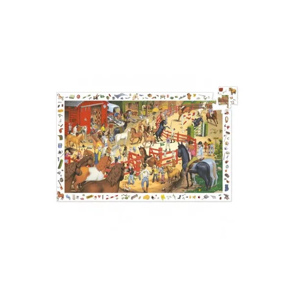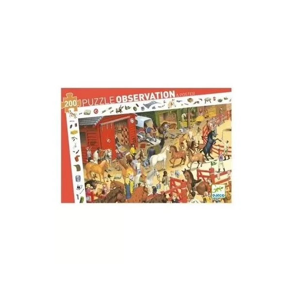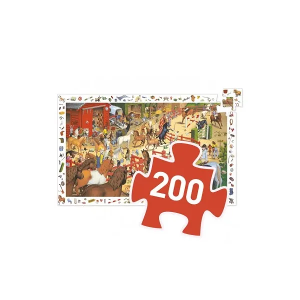 Découvrez le puzzle d’observation équitation de Djeco, un puzzle de 200 pièces riche en détails et en surprises, qui nous plonge au coeur d’un centre équestre. Un puzzle pour les enfants à partir de 6 ans.