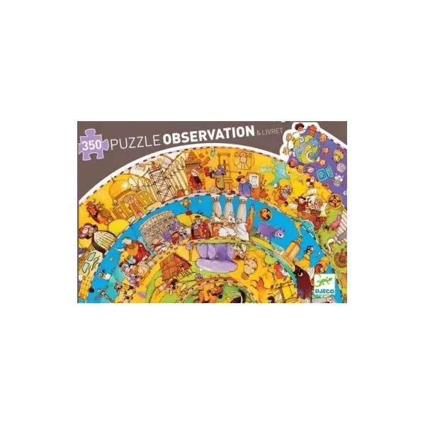 Découvrez le puzzle d’observation Histoire de Djeco, un magnifique puzzle rond de 350 pièces avec livret pour les enfants dès 7 ans. Votre enfant va reconstituer son puzzle et feuilleter le livret pour découvrir les différentes périodes de l’histoire à travers la préhistoire, l’antiquité, le moyen-âge, l’époque moderne et l’époque contemporaine.
