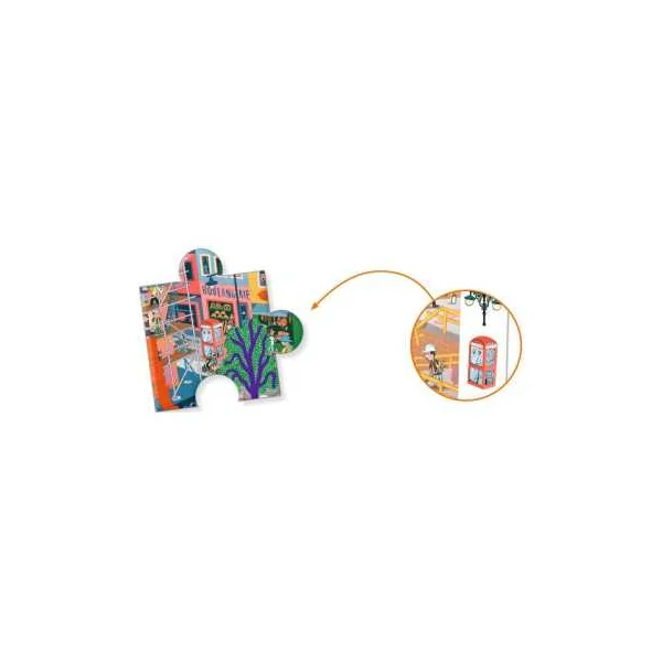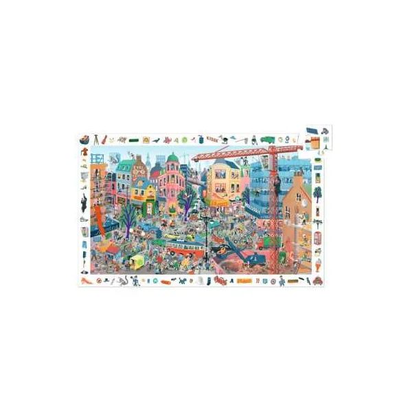 Découvrez le puzzle d’observation La ville de Djeco, un puzzle de 200 pièces pour les enfants dès 6 ans. Votre enfant va créer son puzzle, puis il va s’amuser à retrouver dans l’image les éléments de la frise.