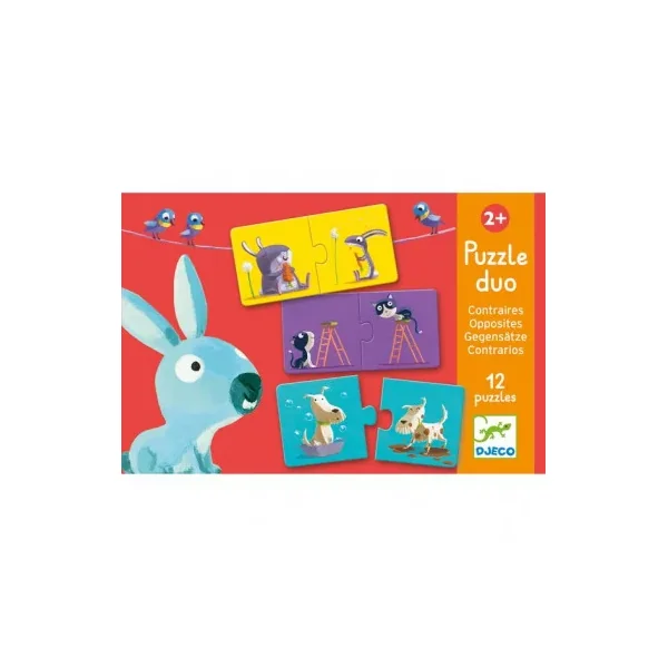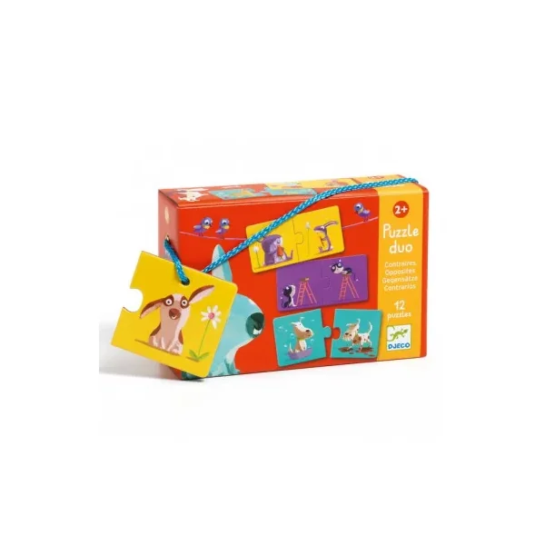 Découvrez le puzzle duo Contraires de Djeco, un puzzle éducatif pour les enfants dès 2 ans. Un premier jeu d’association simple et ludique, dans lequel votre bout de chou devra associer une image et son contraire.
