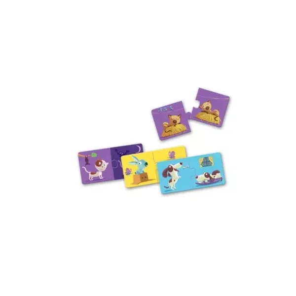 L’enfant va devoir réaliser 10 puzzles de 2 pièces. Ce puzzle coloré permet aux enfants d’appréhender les notions de contraires : jour / nuit, éveillé / endormi, dessous / dessus… Un puzzle auto correctif, car seules les pièces correspondantes forment un puzzle parfait.