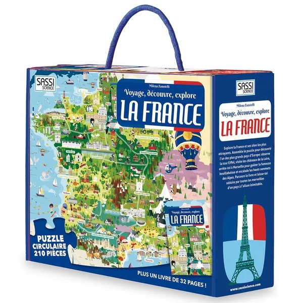 Explore la France et ses sites les plus attrayants ! Assemble le puzzle pour découvrir l’un des plus grands pays d’Europe : observe la tour Eiffel, visite les châteaux de la Loire, arrête-toi à Marseille pour goûter la fameuse bouillabaisse et escalade les hauts sommets des Alpes. Parcours le livre et laisse-toi séduire par toutes les merveilles d’un pays à l’allure inimitable !