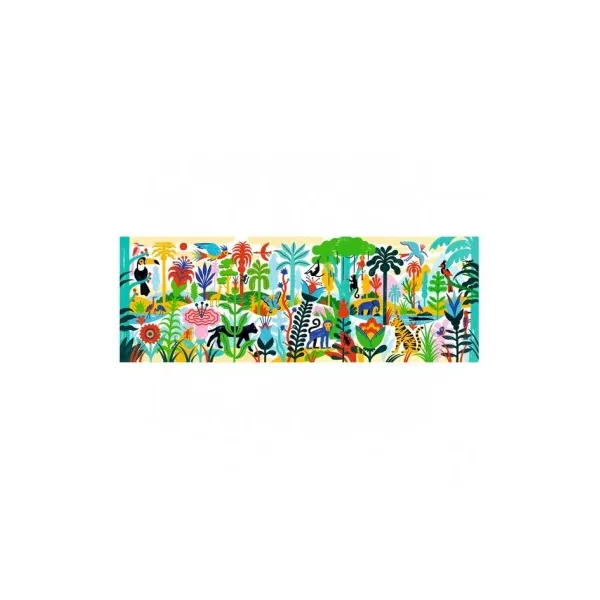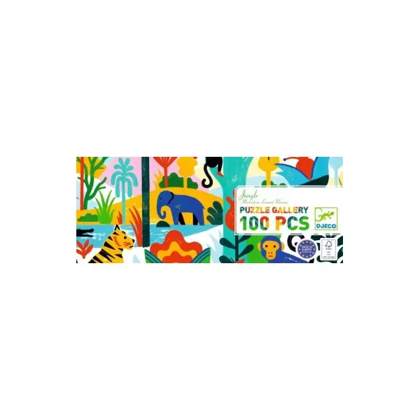 Découvrez le puzzle Gallery Jungle de Djeco, un magnifique puzzle de 100 pièces au format inédit pour les enfants à partir de 5 ans. Jungle est un puzzle Gallery de 100 pièces colorées où fourmillent faune et végétation de la jungle colorée.