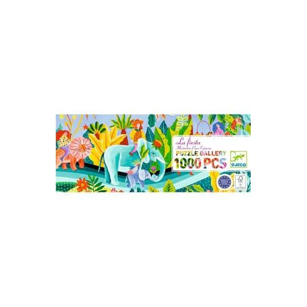 Découvrez le puzzle gallery La Fiesta de Djeco, un puzzle de 1000 pièces en carton conçu pour les enfants, les adolescents et les amateurs de beaux puzzles, qui invite à plonger dans un univers festif et haut en couleur.