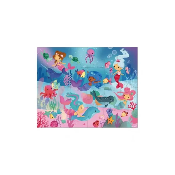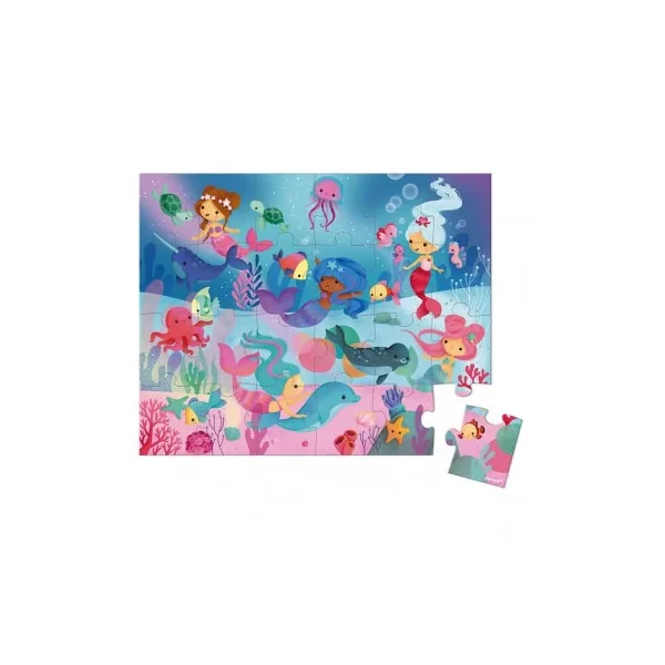 Découvrez le puzzle sirènes de Janod, un magnifique puzzle de 24 pièces en carton à partir de 3 ans. Nagez avec les sirènes et les animaux marins avec ce splendide puzzle fabriqué en France.