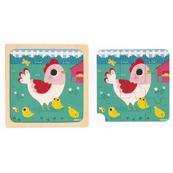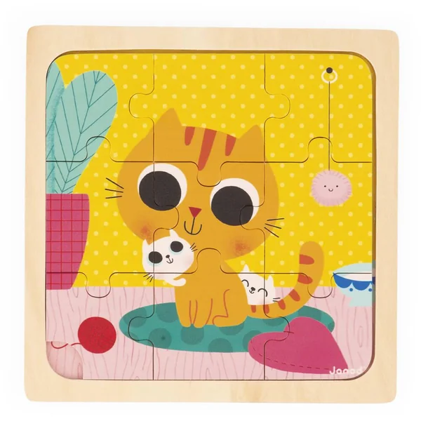 Retrouvez Henriette, Peanut et le lapin blanc dans un même coffret ! Coffret de trois puzzles qui regroupe le petit chat Peanut, le lapin blanc mangeur de carottes et la coquette petite poulette Henriette. Chaque puzzle est composé de 9 pièces et d’une encoche facilitant le retrait des pièces. Sous chaque puzzle, se trouve un modèle imprimé idéal pour aider les plus petits. Faciles à réaliser par les plus petits grâce aux modèles imprimés au-dessous du puzzle. Ludique, ce coffret permettra à votre enfant de développer sa motricité fine, sa concentration et son autonomie. Jouet d’éveil en bois FSC™.