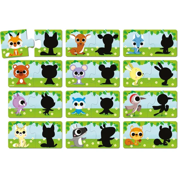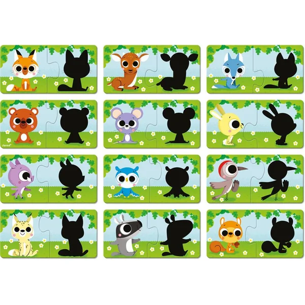 Chuuuut, le lynx est à la lisière de la forêt ! Ces 12 puzzles de 2 pièces sur le thème des animaux de la forêt, permettent à votre enfant de découvrir les ombres. Il devra observer avec attention les contours des animaux pour les différencier et associer les bonnes pièces. Votre enfant pourra enrichir son vocabulaire tout en favorisant sa capacité de réflexion. Fabriqué en France, certifié FSCTM et à base d’encres végétales. Jeu éducatif pour les enfants à partir de 2 ans.