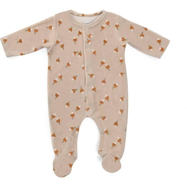 Pyjama et son imprimé radis, en velours bouclette 80% et 20% polyester, à la fois doux et résistant. Ouverture par boutons-pression sur le devant et à et l’entrejambe pour faciliter le change de bébé.