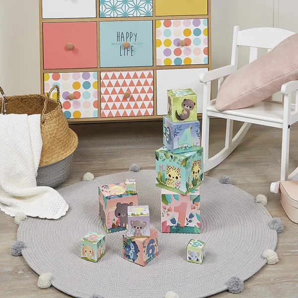 Sur le dessus de chaque élément figure également un chiffre qui permettra à votre enfant de se familiariser avec les chiffres de 1 à 10. En empilant et en se plongeant dans ce bel univers, il développera également sa motricité et son imagination tout en s’amusant !