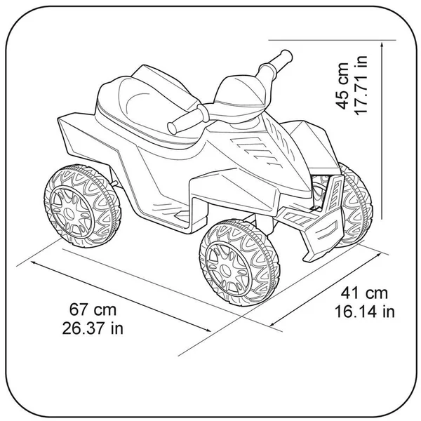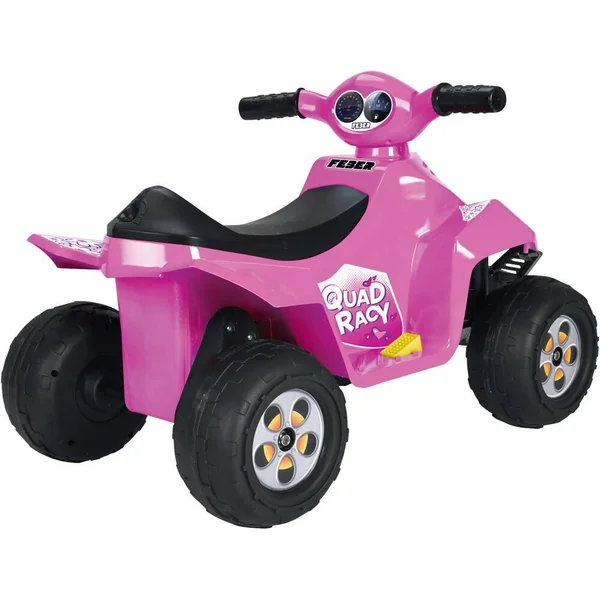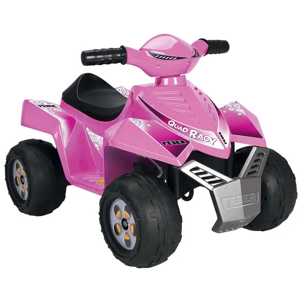 Le quad Racy avec sa couleur rose est conçu pour amuser les petits enfants en toute sécurité. L’accélérateur électrique se contrôle au pied et le frein se déclenche automatiquement en relâchant l’accélérateur. Vitesse : 2 km/h. Hauteur de l’assise : 29 cm (pieds au sol), 21 cm (pieds sur le quad). Poids maximum supporté : 15 kg. Batterie 6V et chargeur inclus. Poids du quad : 5.5 kg. Notice incluse. Temps de charge : 8 à 12 heures. Autonomie de la batterie / durée de jeu : 40 minutes. De 18 mois à 3 ans.