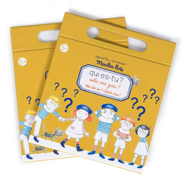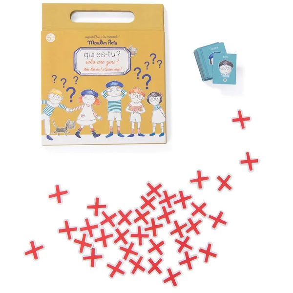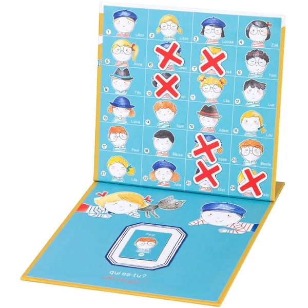 Qui es-tu ? Avec les magnets et les deux planches magnétiques illustrant plusieurs personnages, devine celui de ton partenaire en lui posant des questions sur son identité !