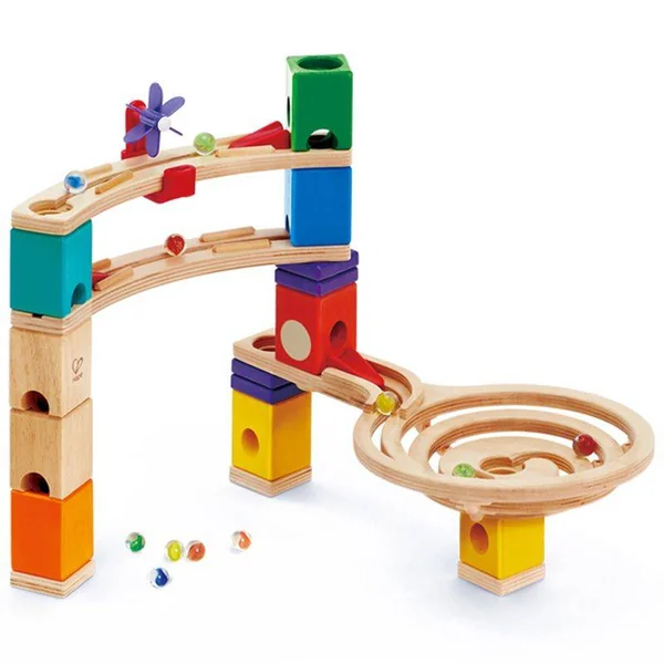 Commencez à construire vos propres circuits de billes avec ce set Race to the finish Quadrilla pour débutant de Hape pour les enfants à partir de 4 ans.