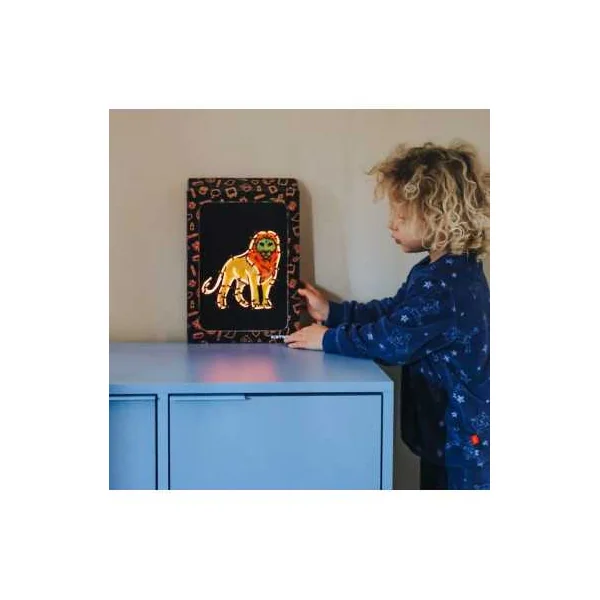 Ce coffret de recharges permet à l’enfant de continuer à créer sans limite. En suivant les tracés pré-perforés, il insère le fil néon déjà en sa possession et donne vie à de nouvelles oeuvres lumineuses.