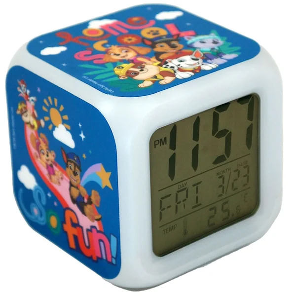 Réveil pour enfants PawPatrol sous licence officielle, LED, design de dessin animé coloré, cadeau idéal