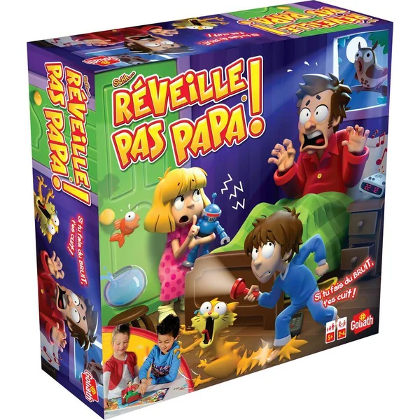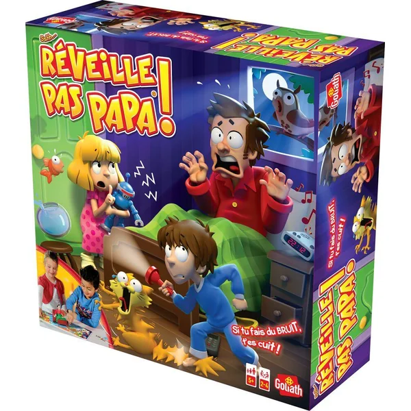 Un premier jeu de plateau pour les enfants dès 4 ans. Sshh Papa est couché dans son lit ! Lance le dé et avance du nombre de cases indiqué. Attention, marche sur la pointe des pieds car si tu tombes sur une case bruit et réveille papa gare au cauchemar !