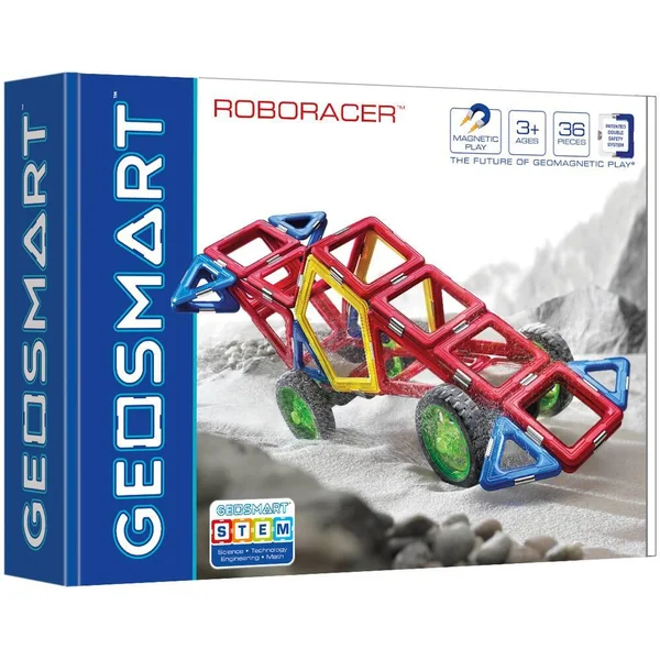 Découvrez le véhicule de course Roboracer Geosmart, un jeu de construction magnétique avec 36 pièces de constructions pour réaliser de magnifiques véhicules à 4 roues taillés pour faire la course. Geosmart est un jouet de construction magnétique qui se compose de pièces de constructions de couleurs vives en forme de carré, losange, triangle, rectangle, triangle isocèle et trapèze. Chaque pièce de jeu renferme des aimants qui sont protégés par un système de sécurité double qui permet aux enfants de créer des constructions en 3D en suivant des plans ou en laissant libre court à leur imagination.