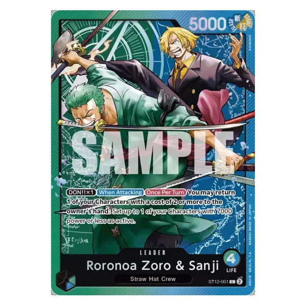 Découvrez Roronoa Zoro & Sanji (st12001), une carte Leader de l’extension Starter Deck: Zoro & Sanji. Idéale pour compléter votre collection, cette carte Leader plaira autant aux collectionneurs qu’aux joueurs.