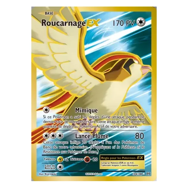 Découvrez Roucarnage (evo104), une carte Pokémon de l’extension XY Évolutions, provenant du bloc XY. Idéale pour compléter votre collection, cette carte Ultra Rare plaira autant aux collectionneurs qu’aux joueurs.