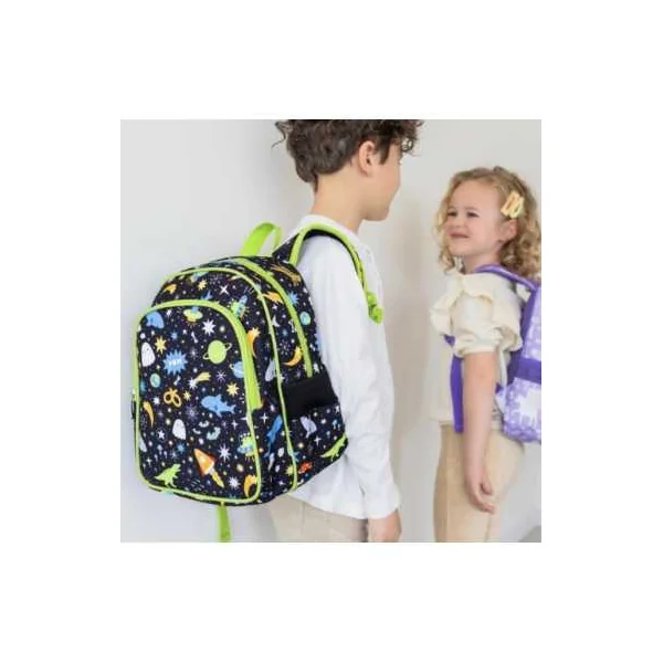 Découvrez le sac à dos isotherme Galaxy de A Little Lovely Company, le cartable idéal pour les enfants pouvant contenir toutes leurs affaires d’école. Un sac à dos joliment illustré sur le thème de l’Espace, qui comprend plusieurs compartiments de rangement et une poche isotherme sur le devant pour conserver le froid ou le chaud.