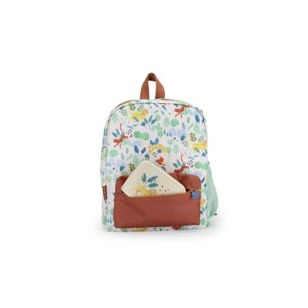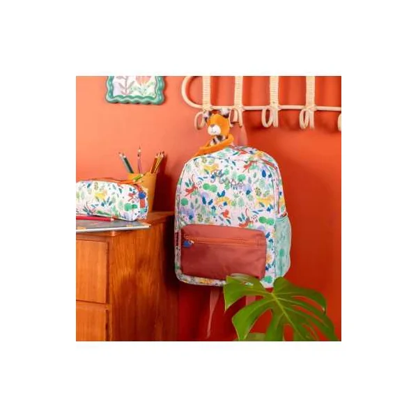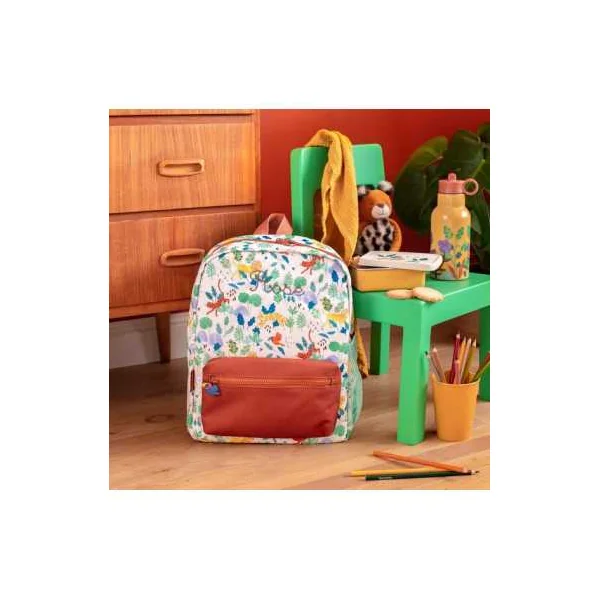 Le sac à dos idéal pour partir à l’école dès 3 ans. On peut y glisser un format A4 sans risque, des petits trésors dans la poche avant ou encore une gourde sur le côté.