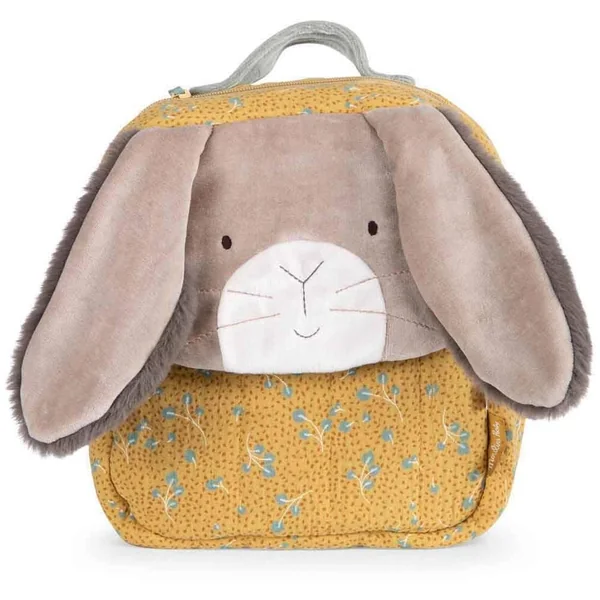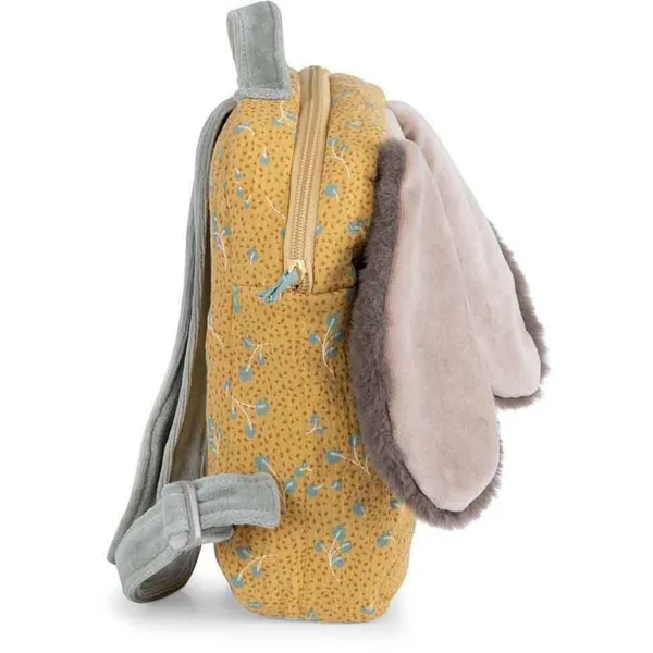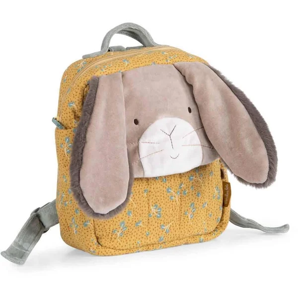 Sac à dos lapin sauge aux oreilles tombantes toutes douces, en lange et velours éponge. Pratique, il dispose d’une poche avant plaquée, d’une fermeture à zip, de bretelles réglables et d’un crochet porte-manteau ! Il peut être brodé au prénom de l’enfant-