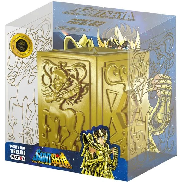 Aiolos, chevalier d’or du Sagittaire et frère ainé du chevalier du Lion Aiolia, il sauvera Athéna lorsque le Grand pope tentera de l’assassiner et sera accusé à tort. A l’article de la mort, il rencontrera Mitsumasa Kido à qui il confiera Athéna et l’Armure d’Or du Sagittaire. Retrouvez la première des douze Pandora’s Box Gold, celle qui déterminera le destin des chevaliers du Zodiaque ! Cette tirelire est l’accessoire indispensable pour tous les fans de Saint-Seiya.