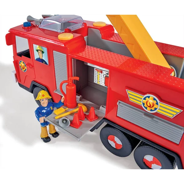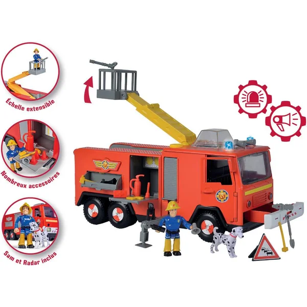 Comme ton héros préféré, Sam le Pompier, va porter secours aux habitants de Pontypandy ! Avec cette représentation parfaite de Jupiter, tu auras vraiment l’impression de faire partie de l’équipe de pompiers du dessin animé ! Au moment de partir en intervention allume les gyrophares et la sirène ! Tu n’as qu’à appuyer sur un bouton pour déclencher les effets lumineux et sonores ! Le camion avance en roue libre et possède tous les attributs d’un vrai : feux avant et arrières fonctionnels, échelle extensible, dôme pour le chien Radar, nombreux espaces de stockage… Une figurine articulée de Sam le pompier, une figurine du chien Radar et de nombreux accessoires inclus pour agrémenter les fonctions de jeu : plots, pelle, extincteur, mégaphone…