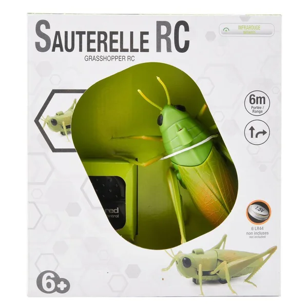 - 6 piles boutons LR44 non fournies : 3 pour l’insecte et 3 pour la télécommande.