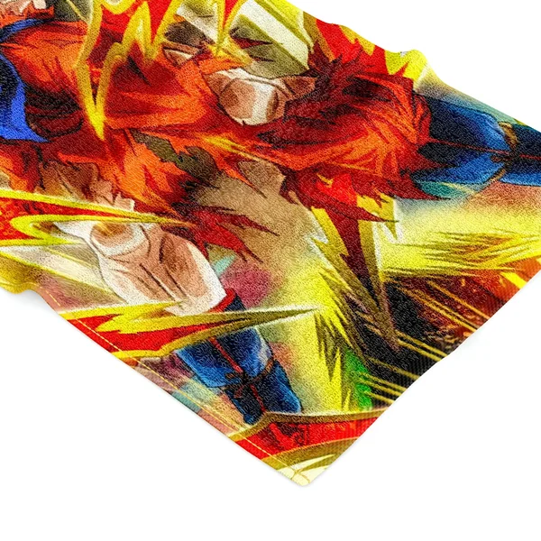 Cette serviette affiche une illustration saisissante de Goku en pleine transformation. Elle capture l’instant de pure fureur où le héros atteint une nouvelle limite, déchaînant son énergie. Les couleurs vives et dynamiques, ainsi que les détails précis tels que les éclairs de ki et son expression déterminée, reproduisent fidèlement la puissance emblématique du mode Super Saiyan. C’est une immersion visuelle dans les moments clés de la saga où Goku surpasse ses adversaires.