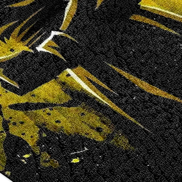 Cette serviette met en scène Goku dans sa forme emblématique de Super Saiyan, avec ses cheveux hérissés et sa posture déterminée. Le contraste entre le jaune éclatant de son aura et le noir profond du fond met en valeur la puissance émanant du personnage. Les éclaboussures de couleurs jaunes ajoutent un effet dynamique, comme si l’énergie Saiyan se répandait sur la serviette. C’est une manière visuellement saisissante de rendre hommage à l’un des moments les plus iconiques de Dragon Ball Z.