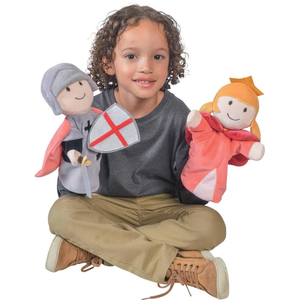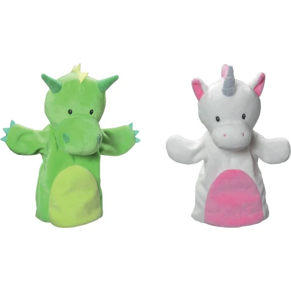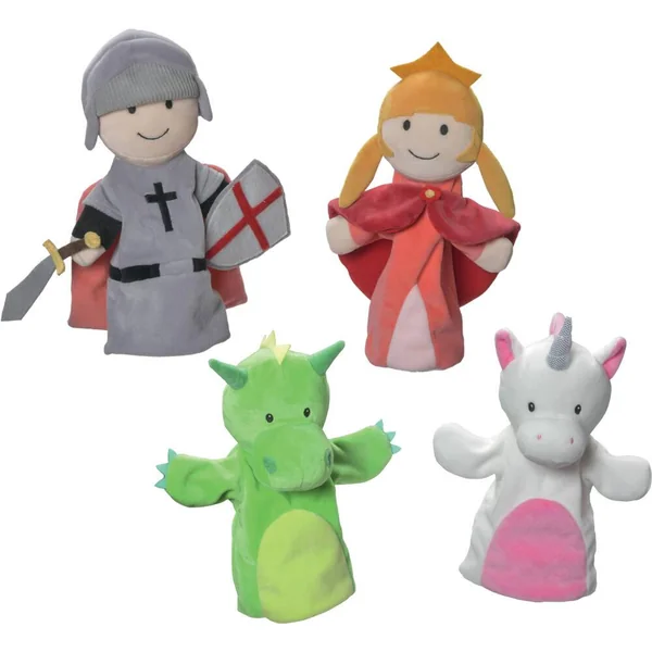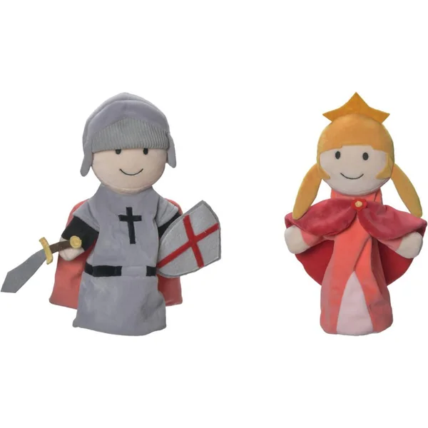 Set de 2 marionnettes. 2 modèles assortis : le dinosaure et le chevalier, ou, la licorne et la princesse. Hauteur d’une marionnette : 25.4 cm environ. Lavable à la main, la température de l’eau ne doit pas dépasser 30°, l’eau froide est recommandée. Matières : PP, coton, nylon. Intérêts éducatifs pour l’enfant : développe l’imagination, favorise l’expression des sentiments et des émotions.