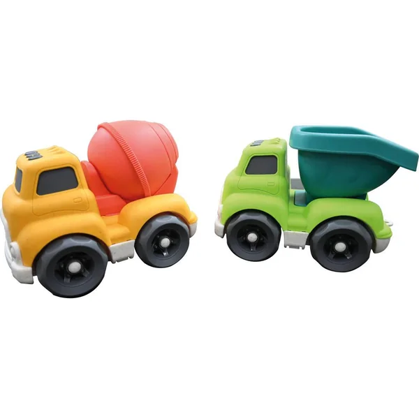 2 engins de chantier en fibre de blé. Un plastique naturel, recyclable et non dangereux pour les enfants – Stimule la dextérité et éveille les sens grâce aux couleurs vives et à la matière originale-