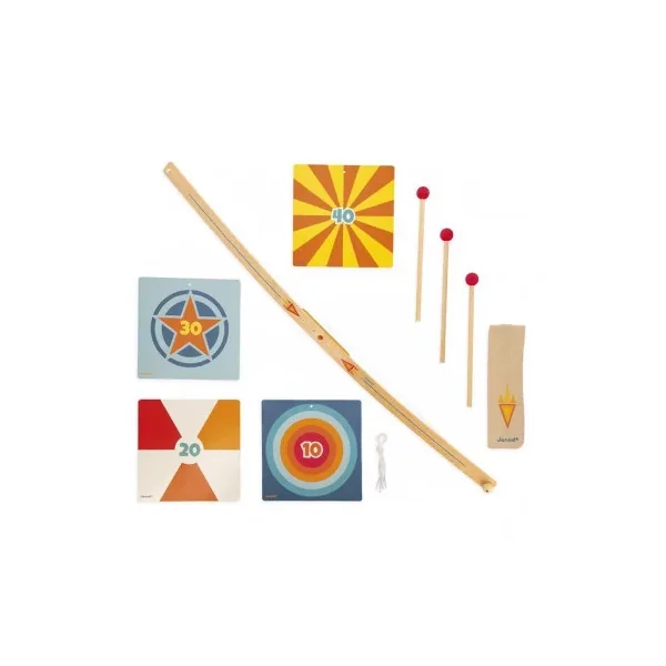 Découvrez le set tir à l’arc de Janod, un jeu d’adresse et de fête foraine pour enfants à partir de 5 ans. Une activité idéale à organiser lors d’un anniversaire avec des cibles à renverser à l’aide des flèches.